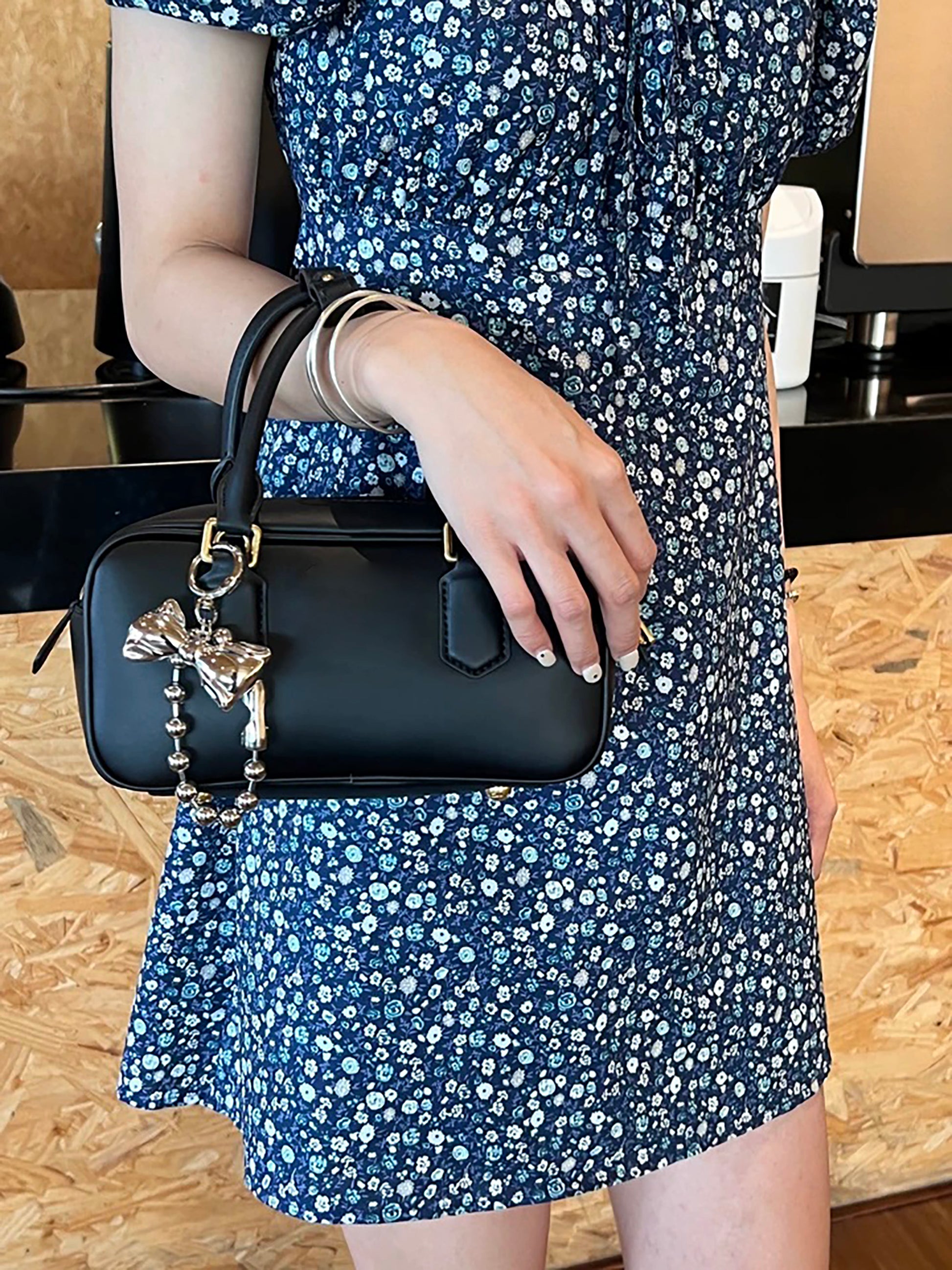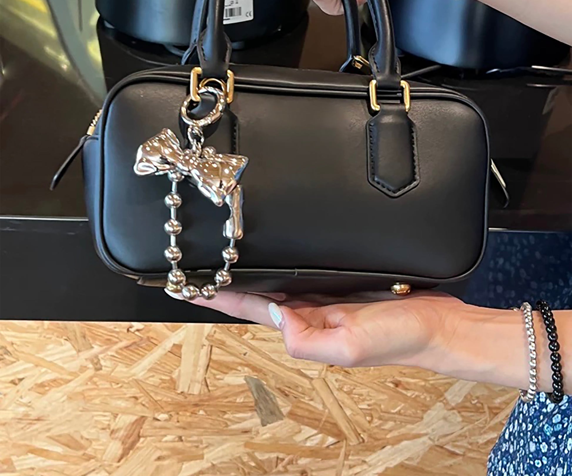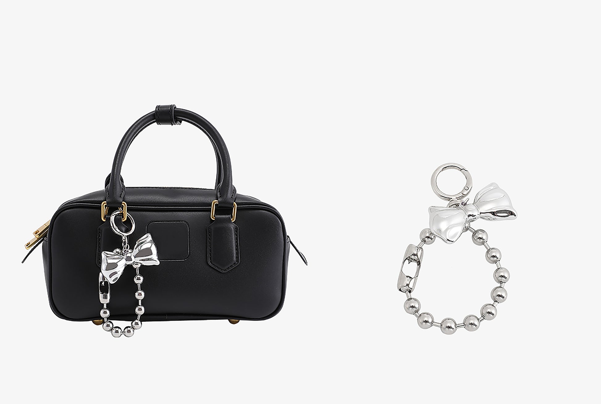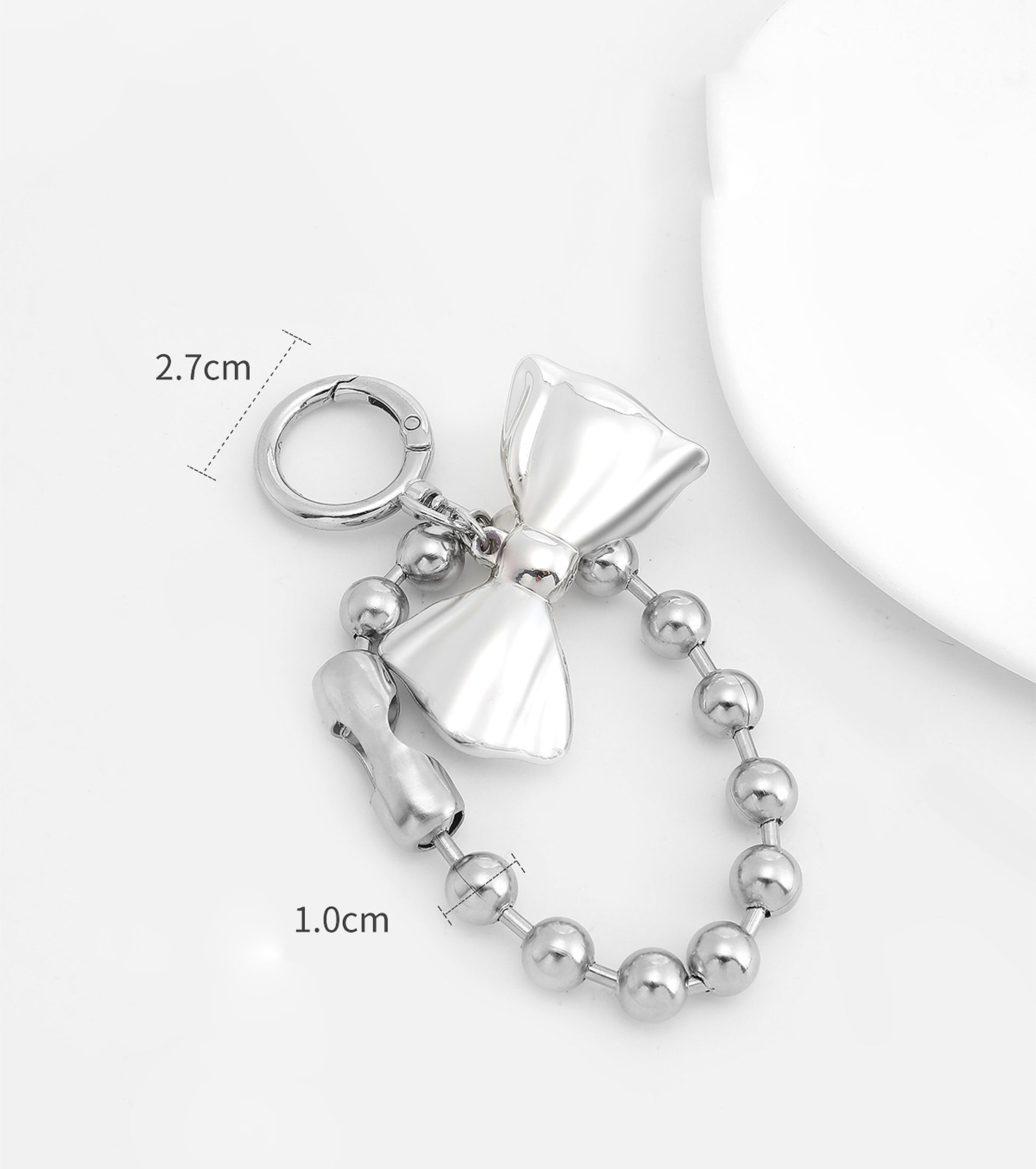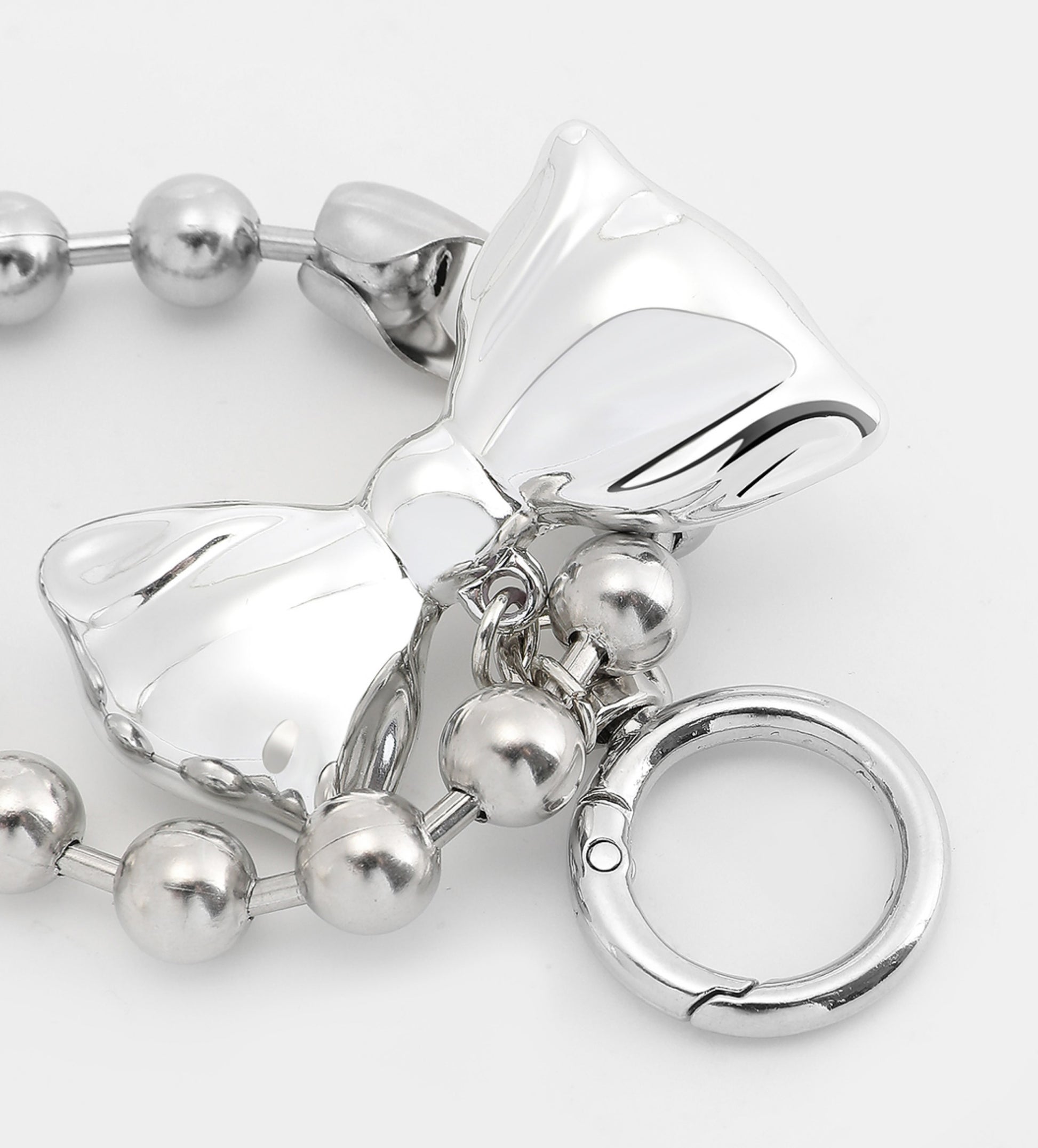 Arcadie leather bag charm, silver bow bag decoration, metal heart-shaped bead keychain