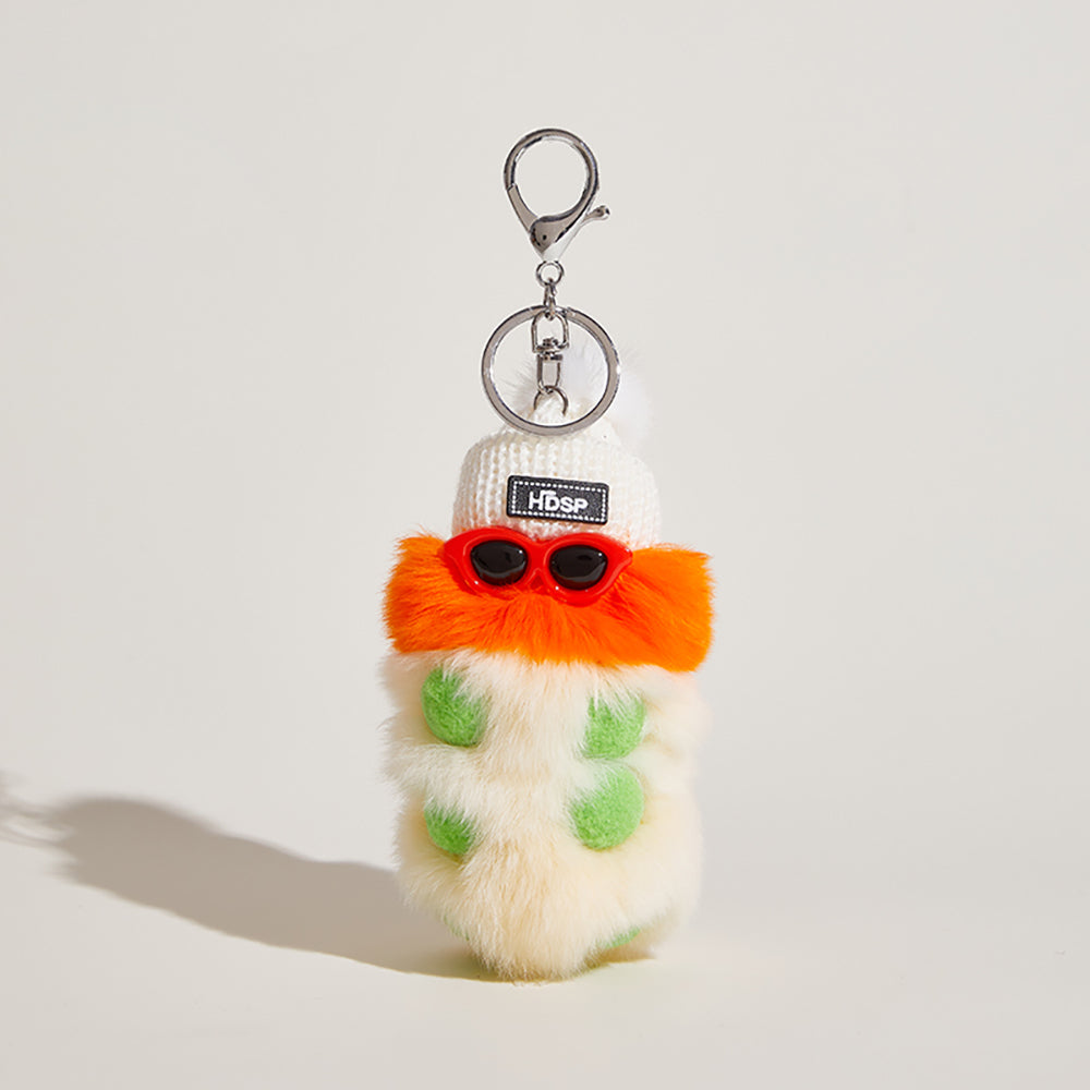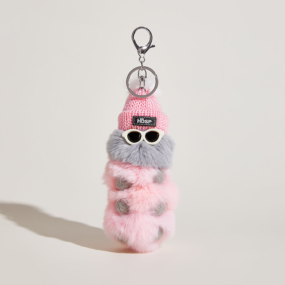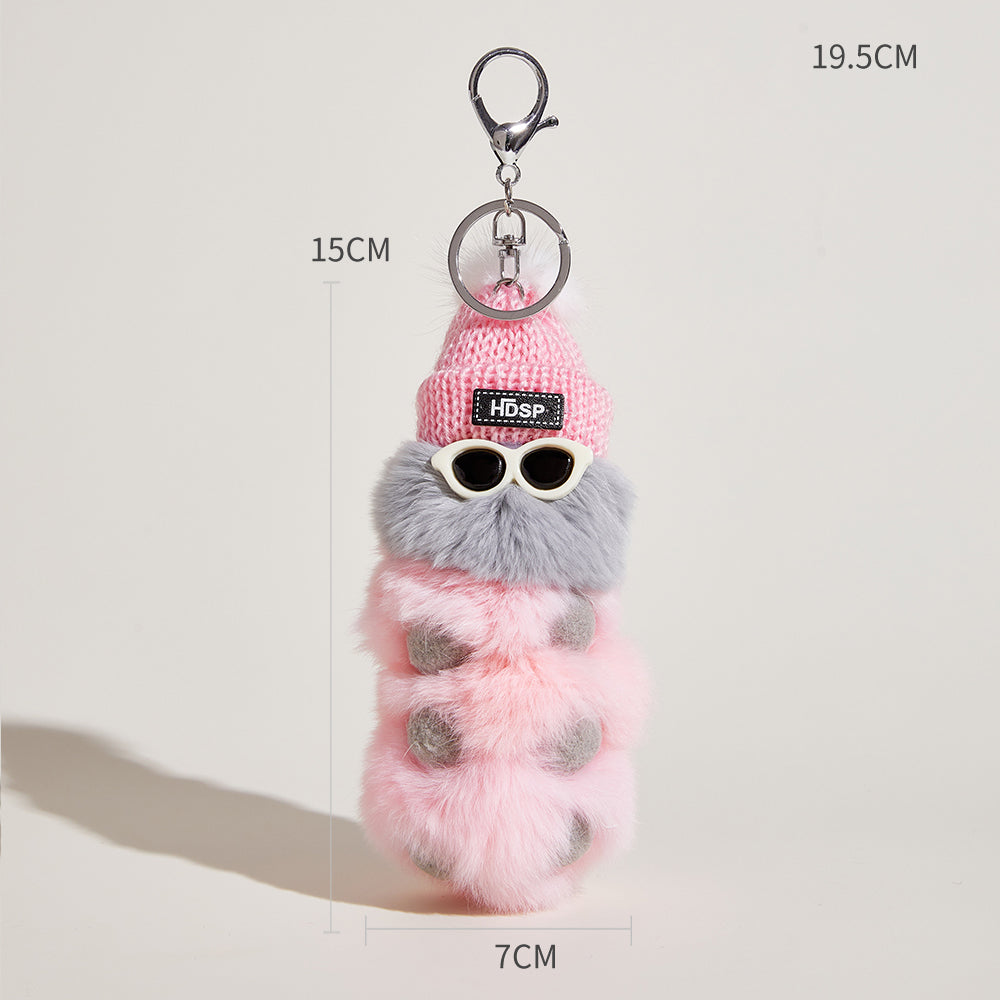 Cute Fur Caterpillar Bag Charm - Plush Lazy Bunny Keychain, Soft Plush Doll Backpack Decoration