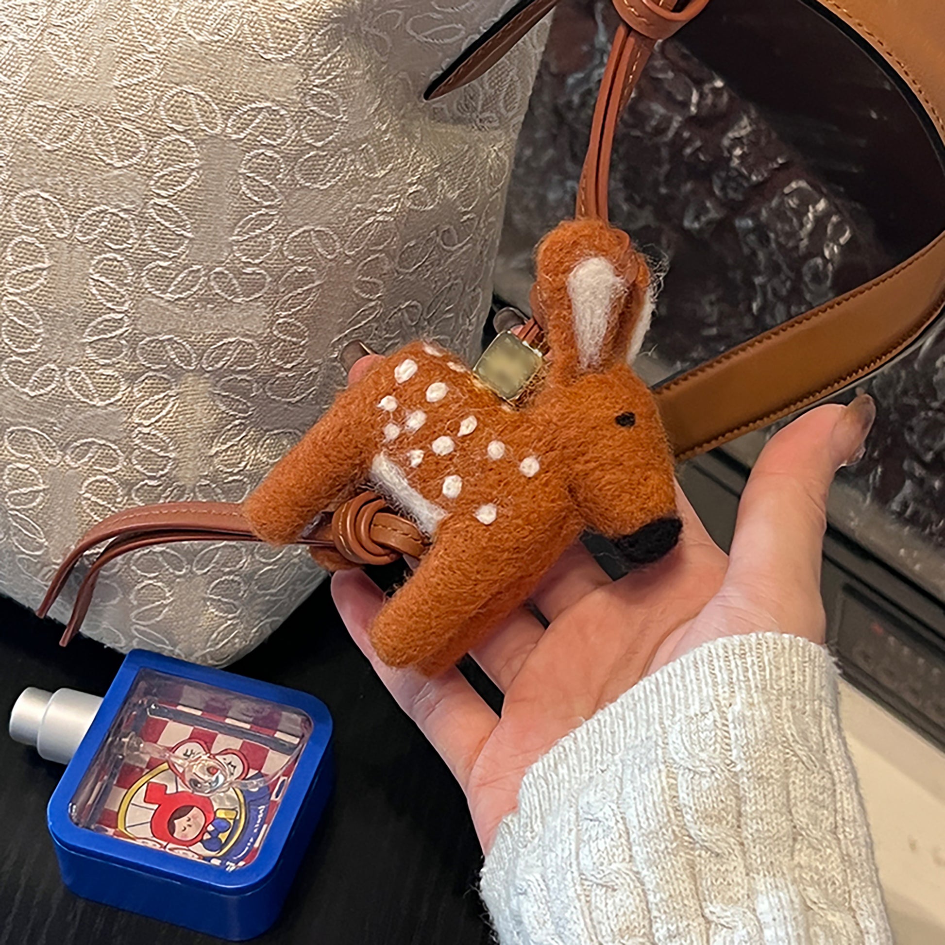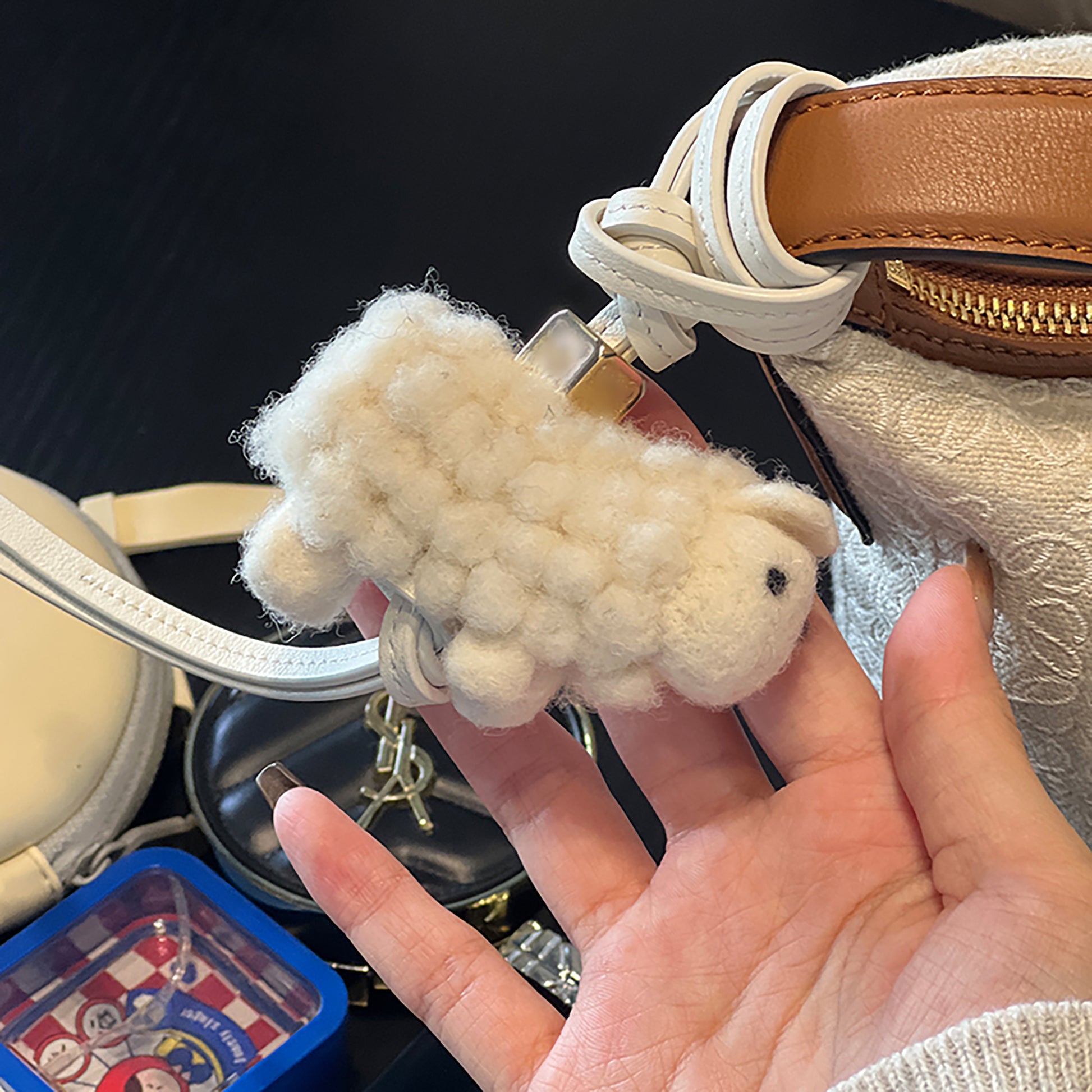 Felt material bag charm, animal-shaped car pendant, genuine leather keychain,fashion bag accessories