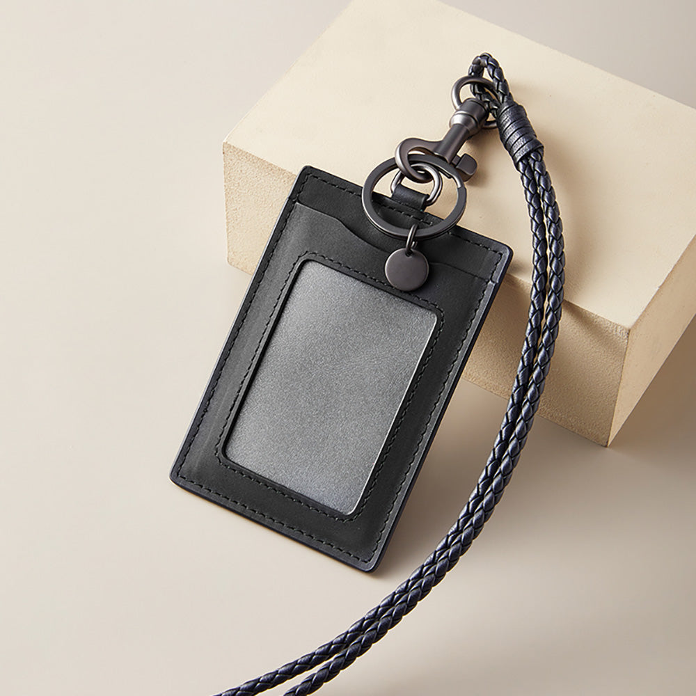 Handcrafted Genuine Leather ID Card Holder – Premium Neck Strap Badge Holder, Employee Badge & Access Card Protector