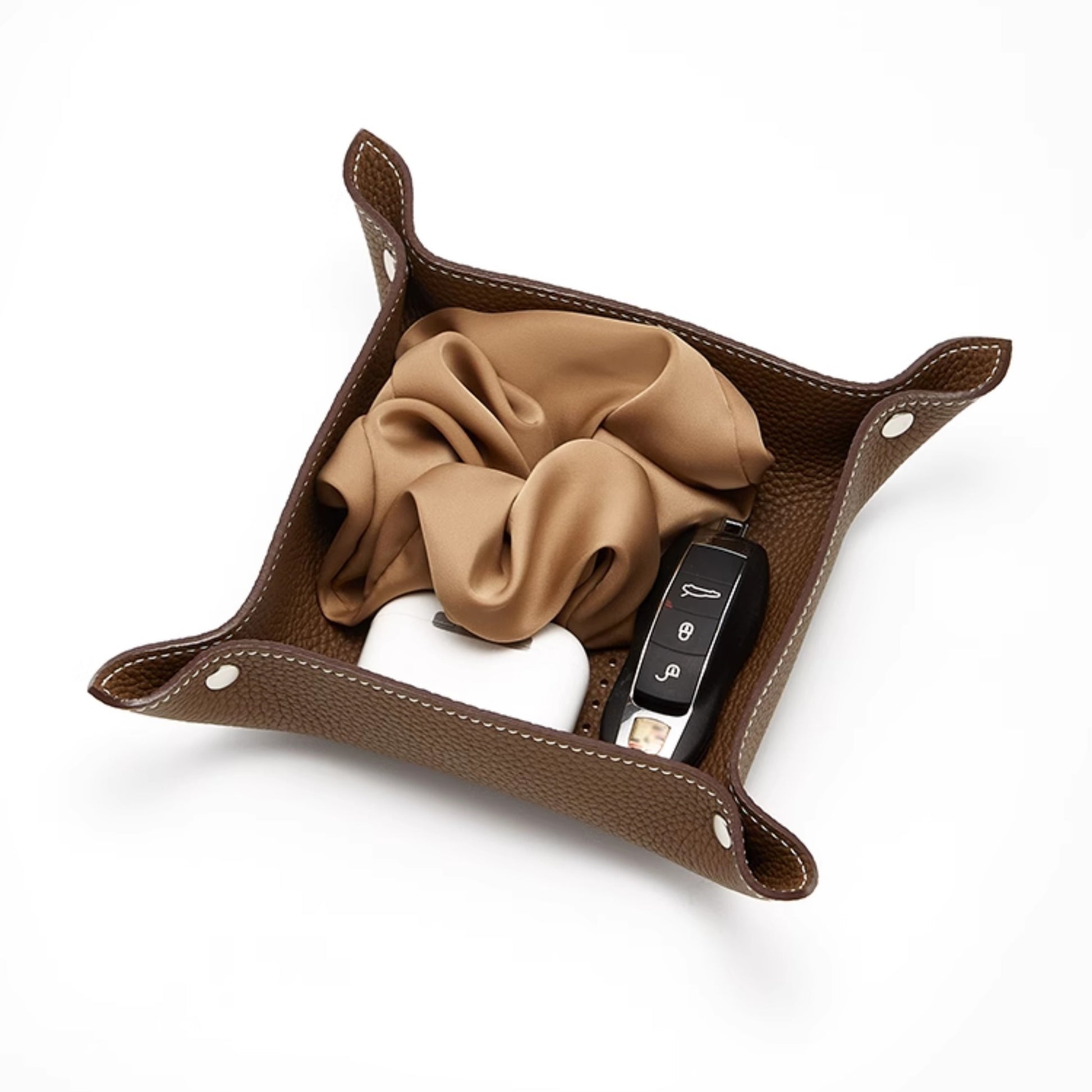 Handcrafted Genuine Leather Jewelry Tray – Premium Cowhide Storage Tray for Desk, Entryway, and Accessories