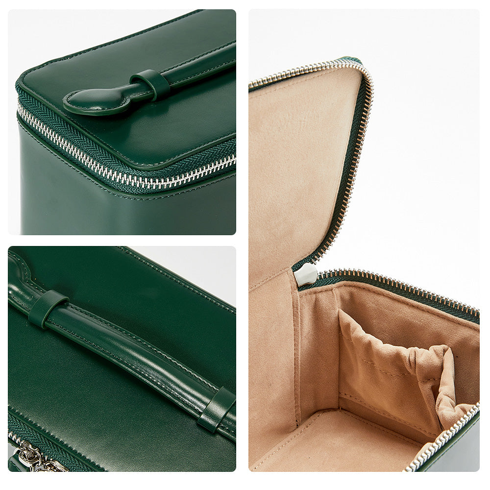 Handcrafted Genuine Leather Makeup Organizer – Portable Travel Toiletry & Skincare Storage Box, Large Capacity