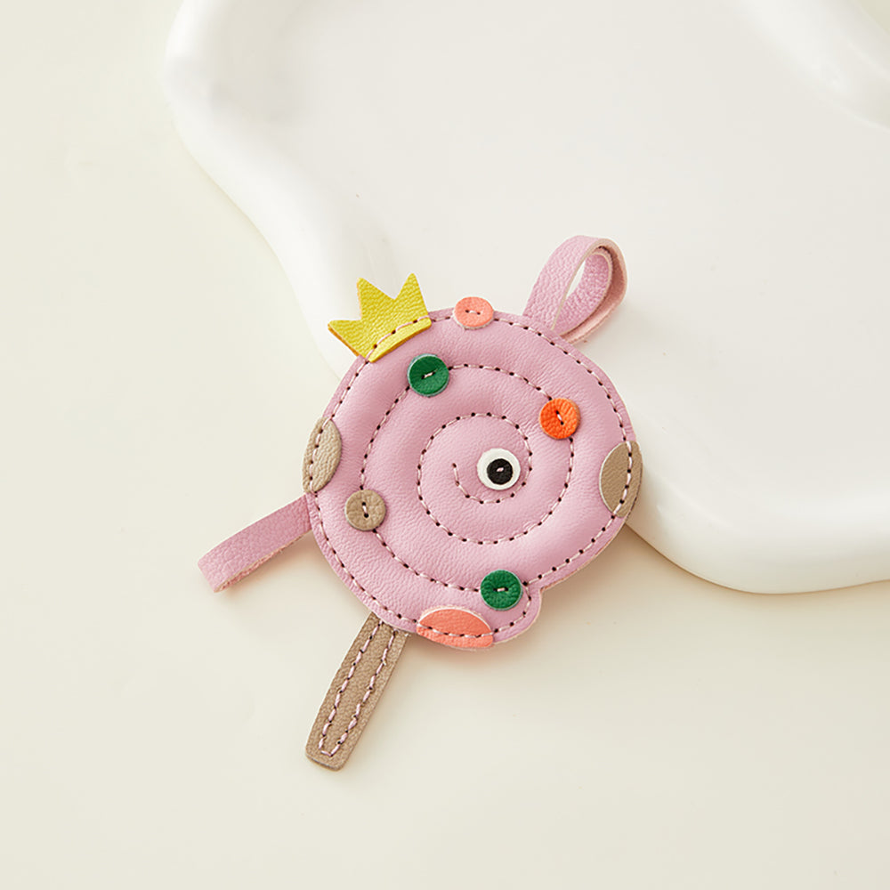Handmade Lollipop Leather Keychain Charm - Creative Fun Leather Pendant for Handbags & Backpacks