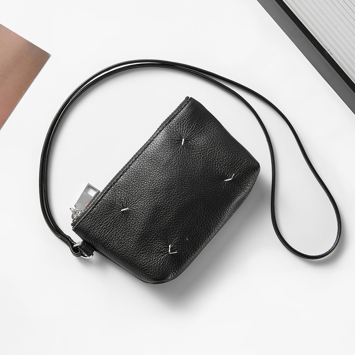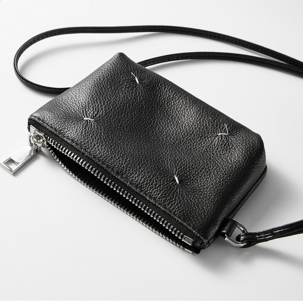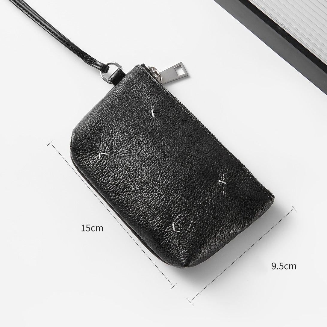 High-Quality Genuine Leather Mini Card Holder & Coin Purse – Stylish Neck Hanging Small Square Bag for ID and Essentials