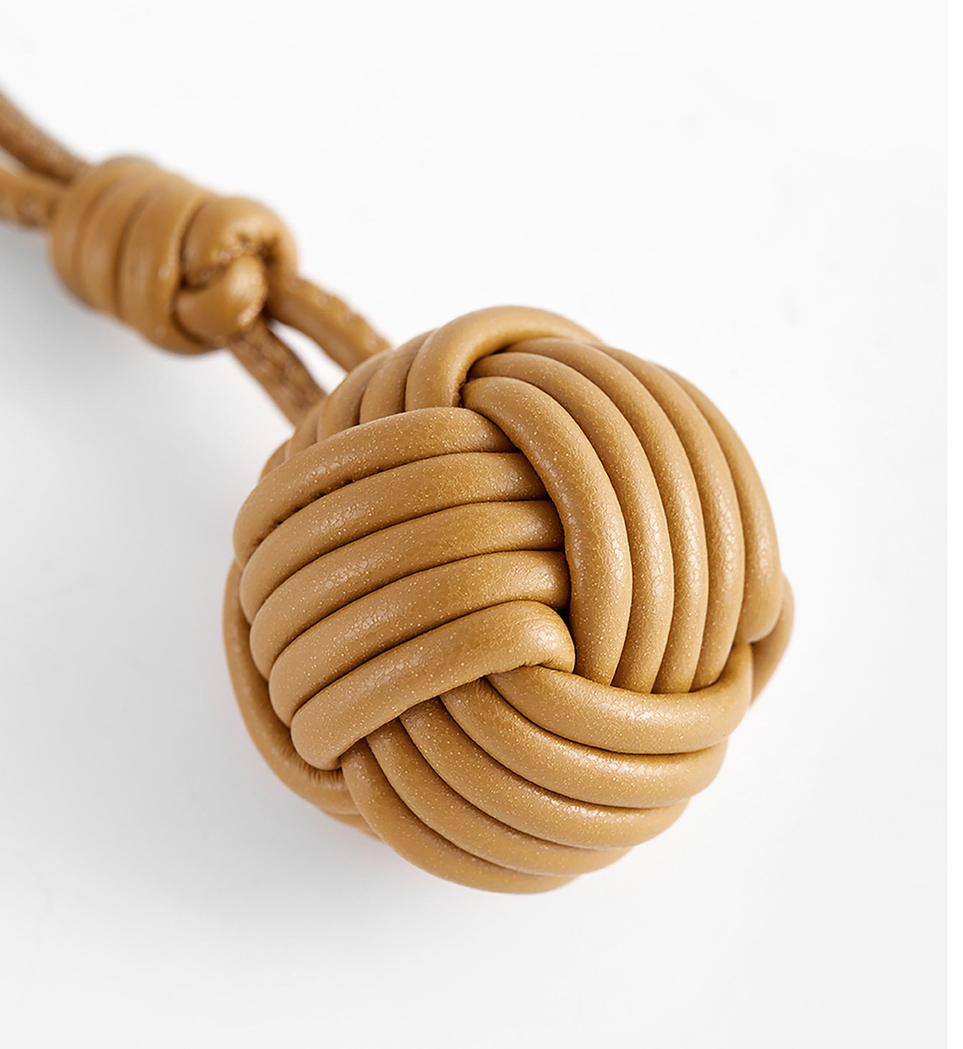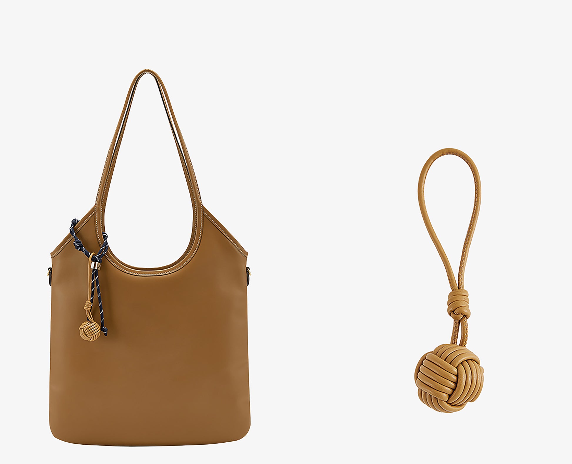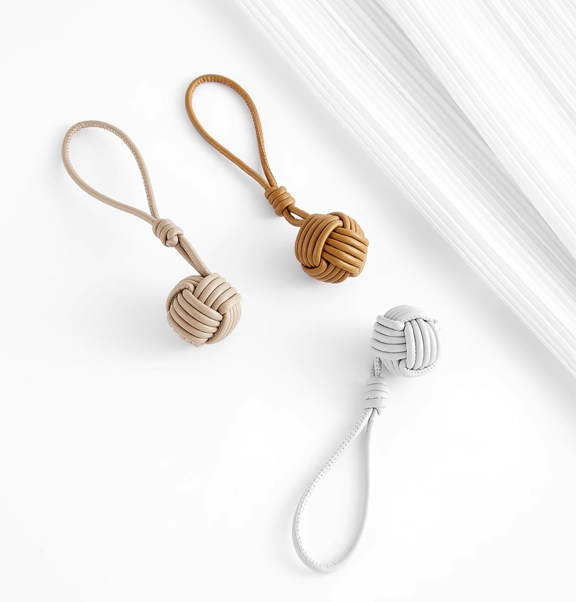 IVY Leather Handbag Charm, Genuine Leather Tennis Ball Style Keychain, Beige Gift Bag Accessory