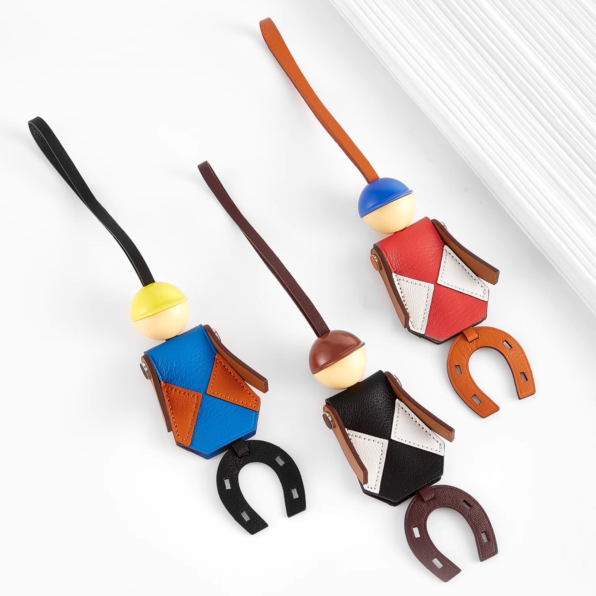 Leather Jockey Keychain Pendant – Stylish Horse Rider Charm for Evelyn, Birkin, and Kelly Bags