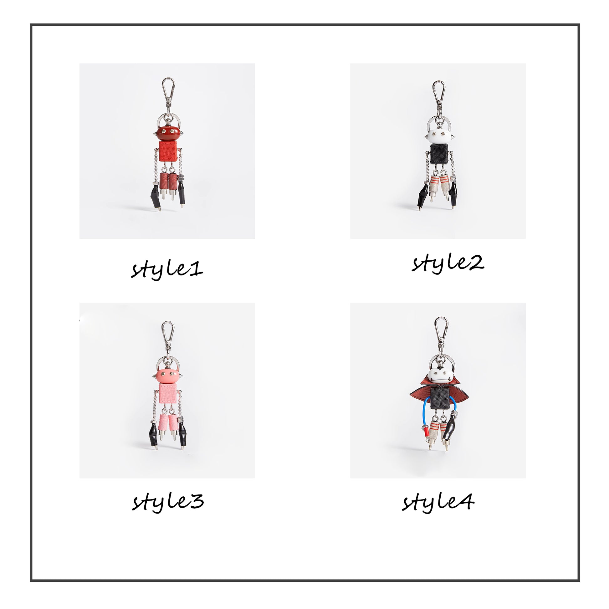 Saffiano Leather Modern Robot Style Keychain Pendant for Luxury Bags – Cute ; Trendy Accessory