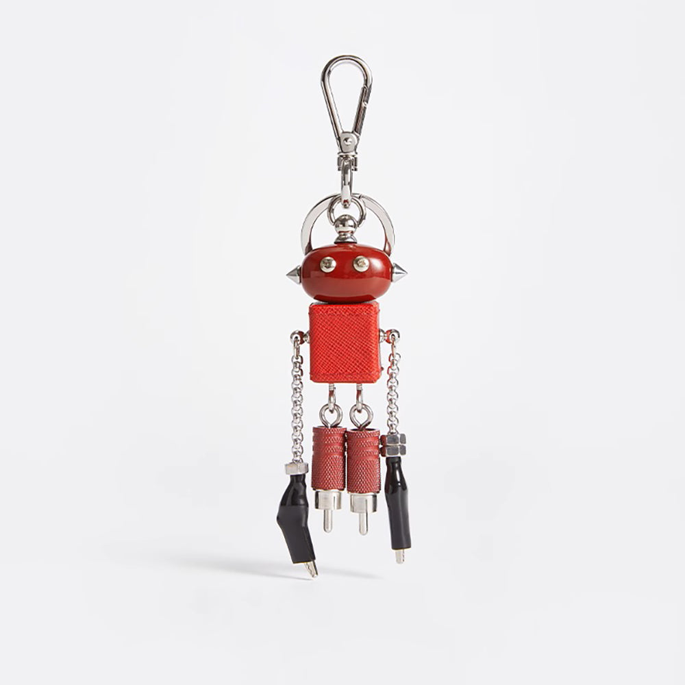 Saffiano Leather Modern Robot Style Keychain Pendant for Luxury Bags – Cute & Trendy Accessory