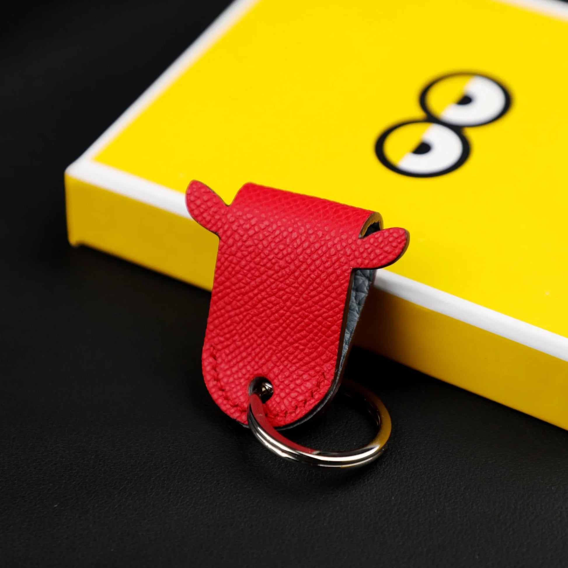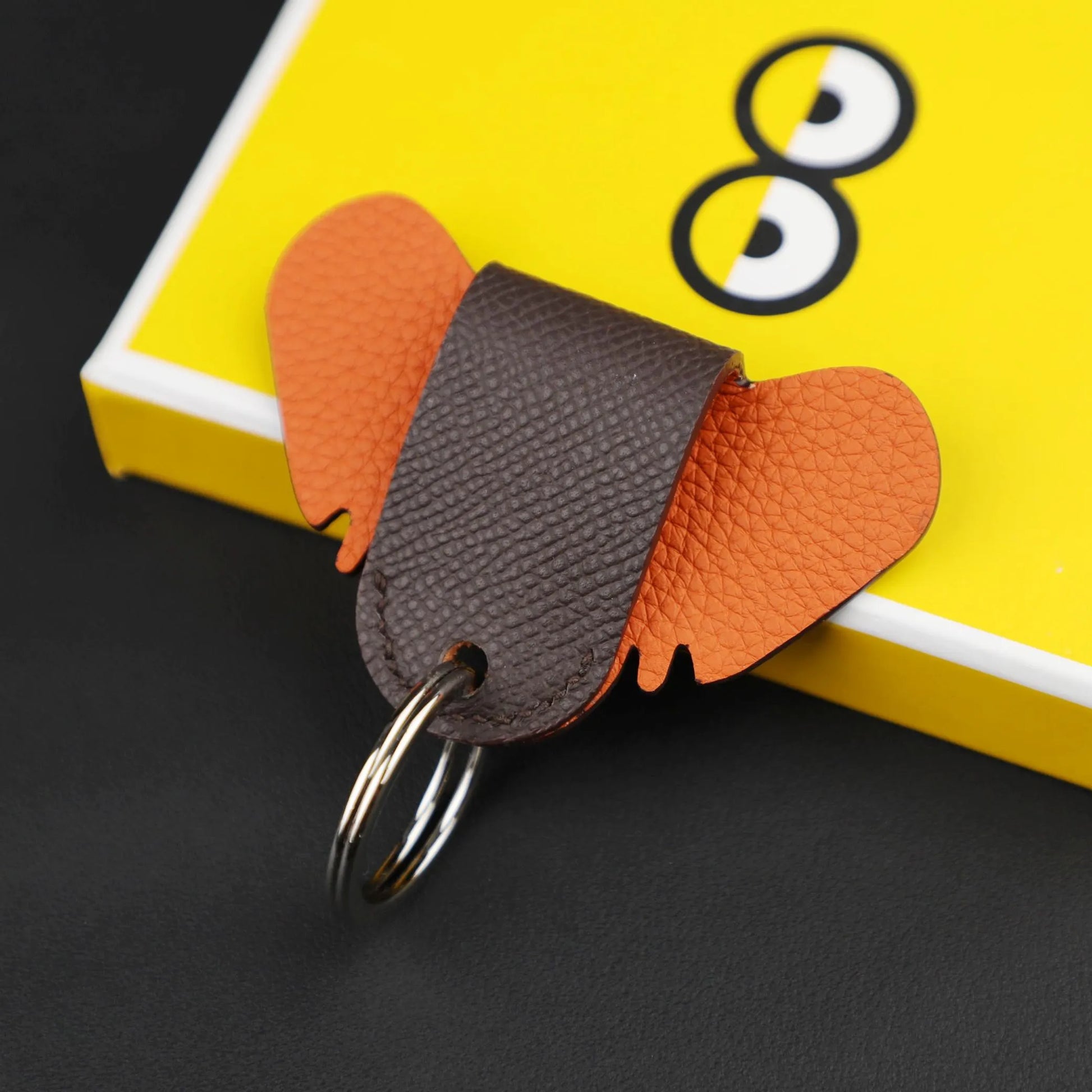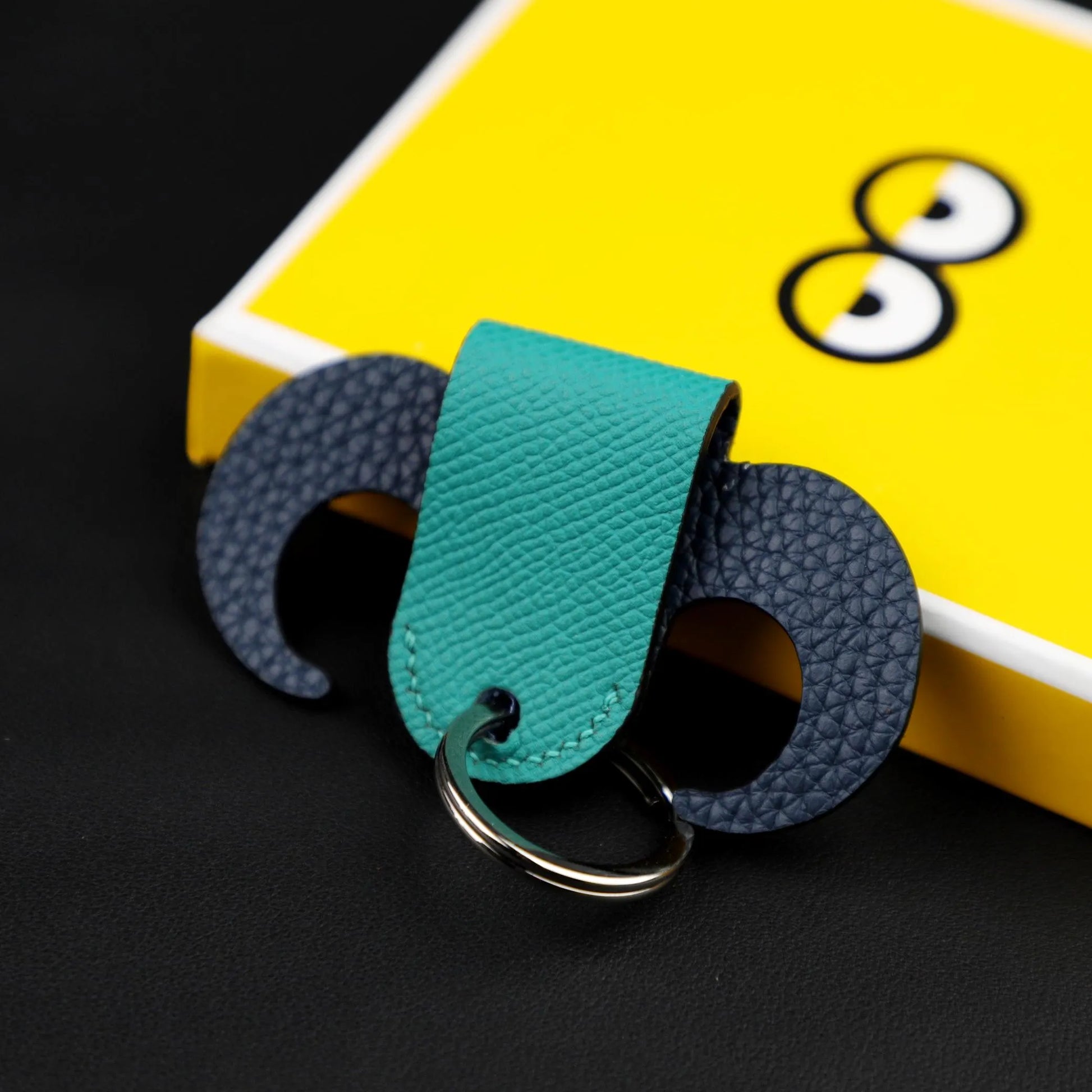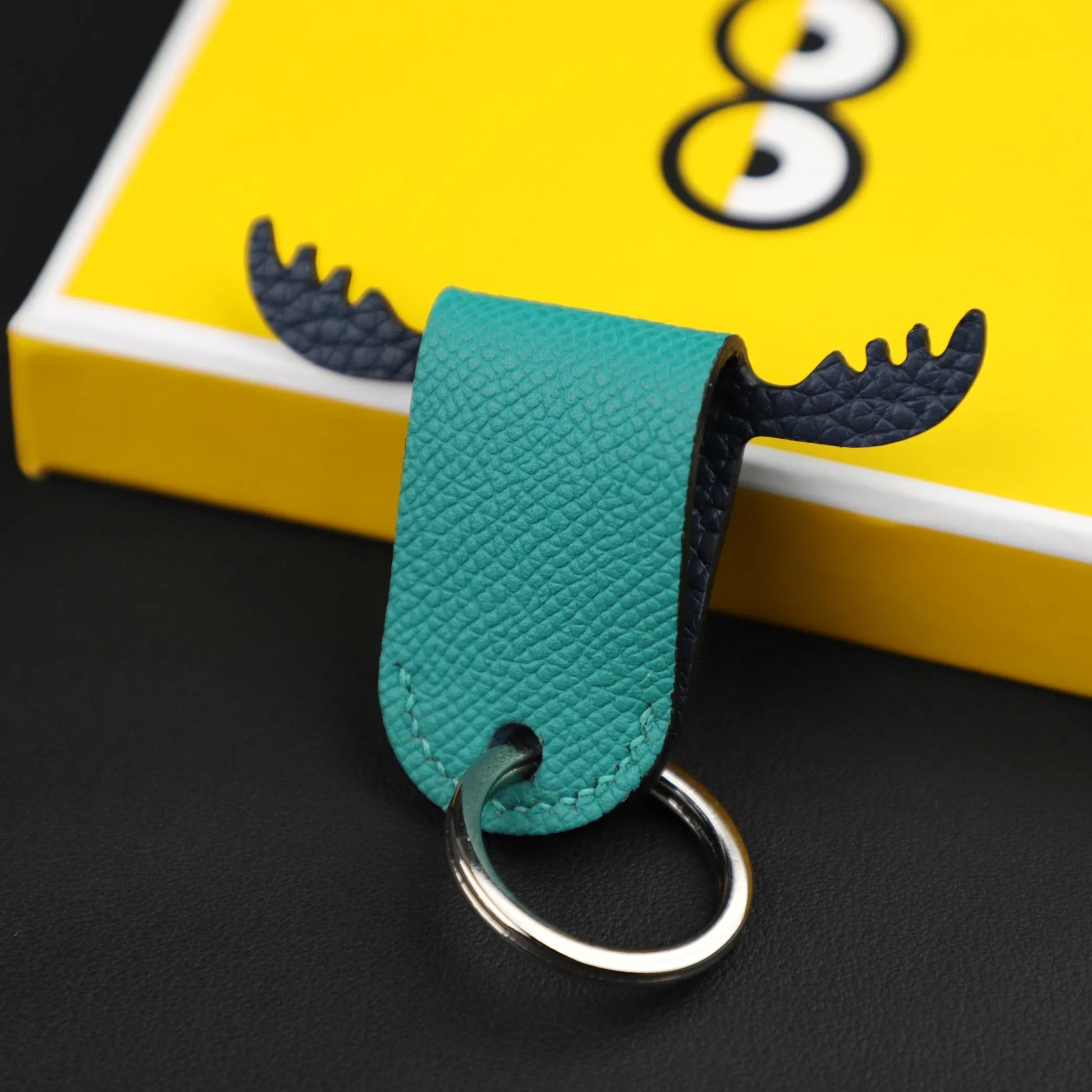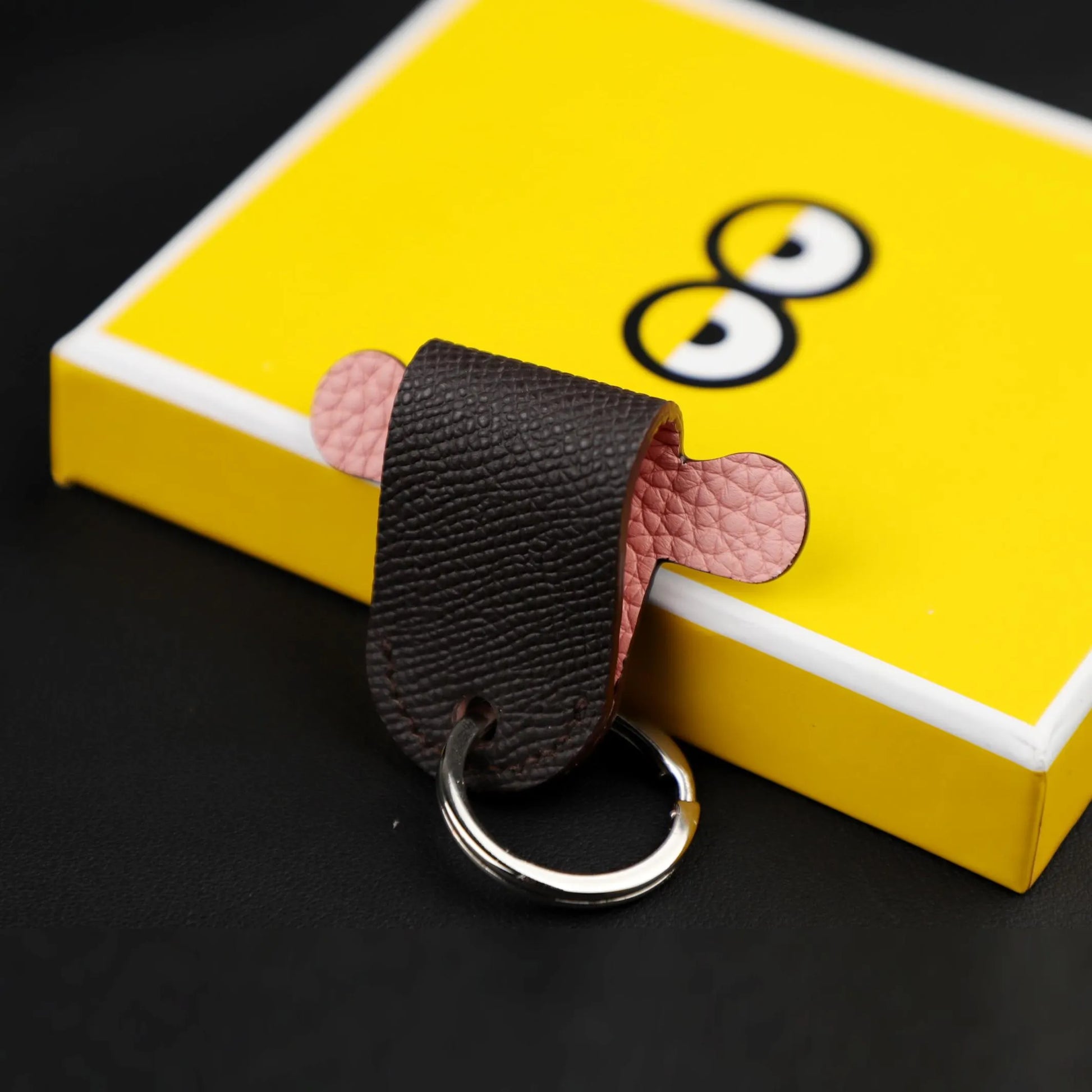 Petit H Key Ring,Real Leather Key ring in calfskin with palladium plated brass ring, Fashion goods and accessories