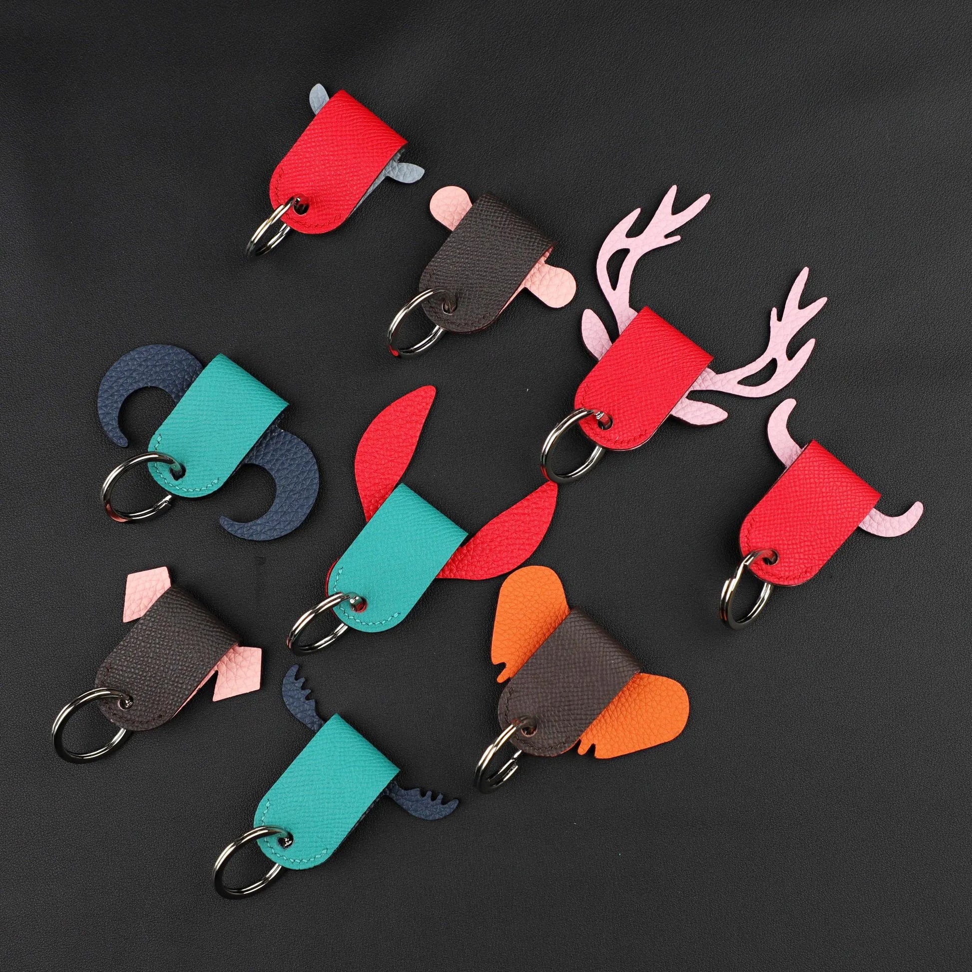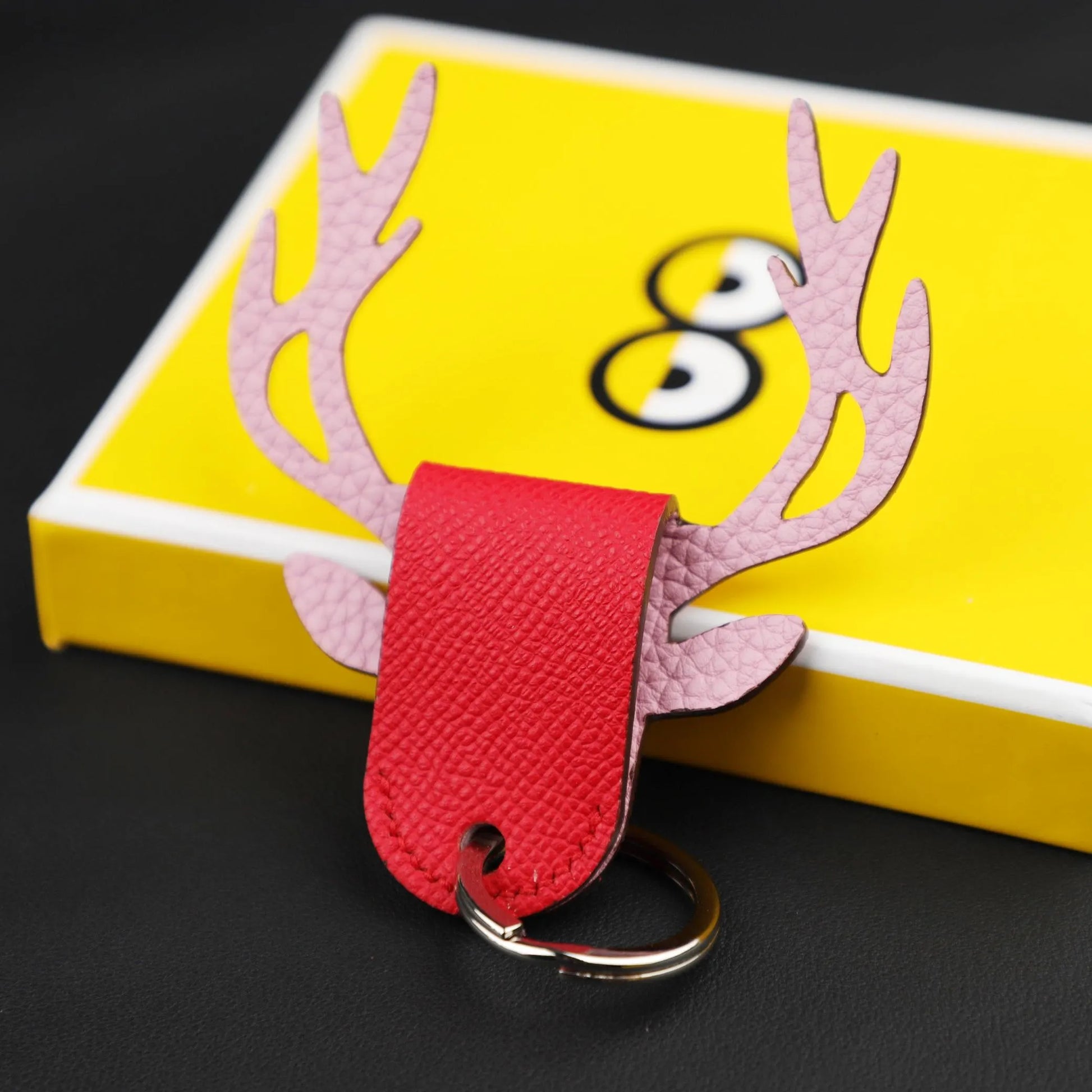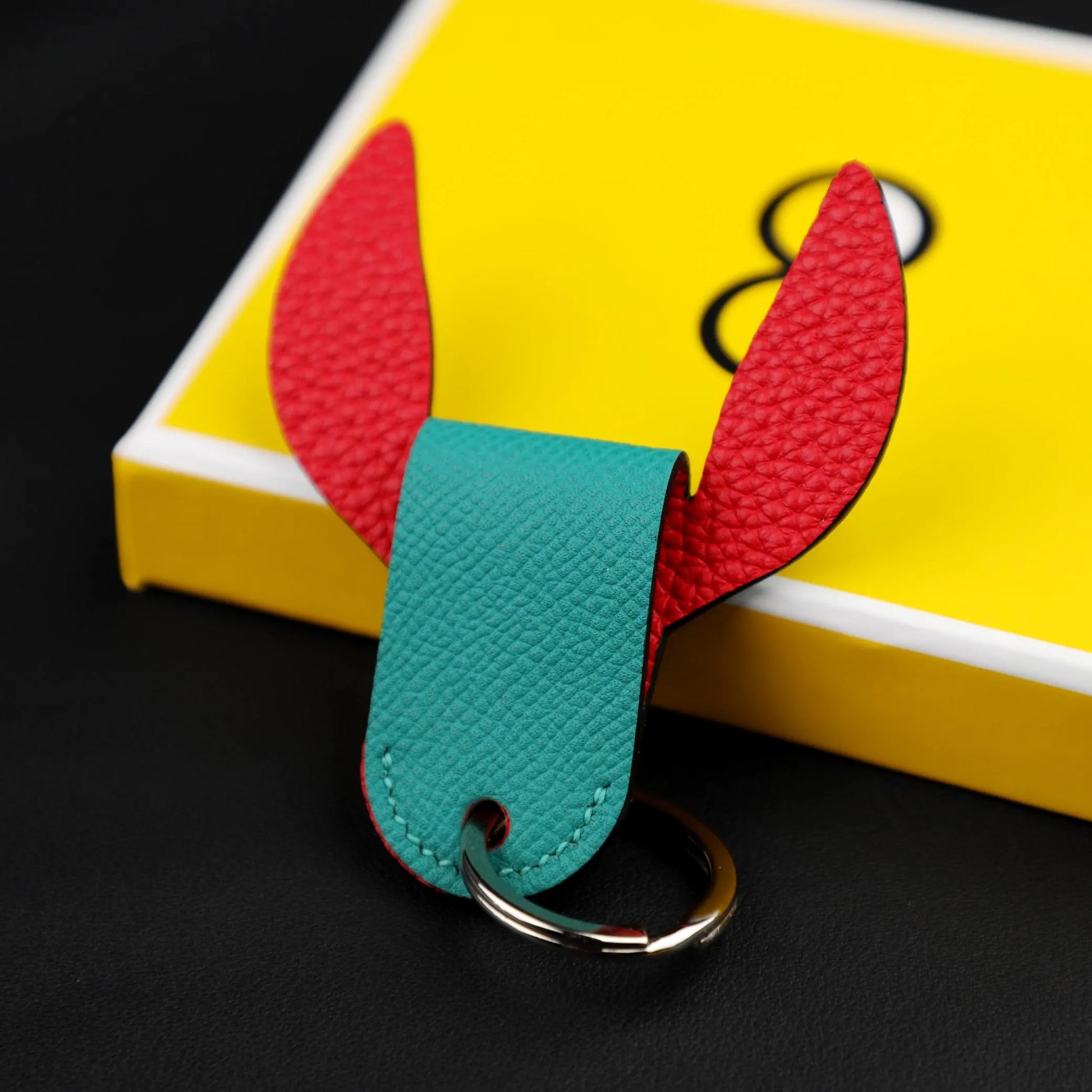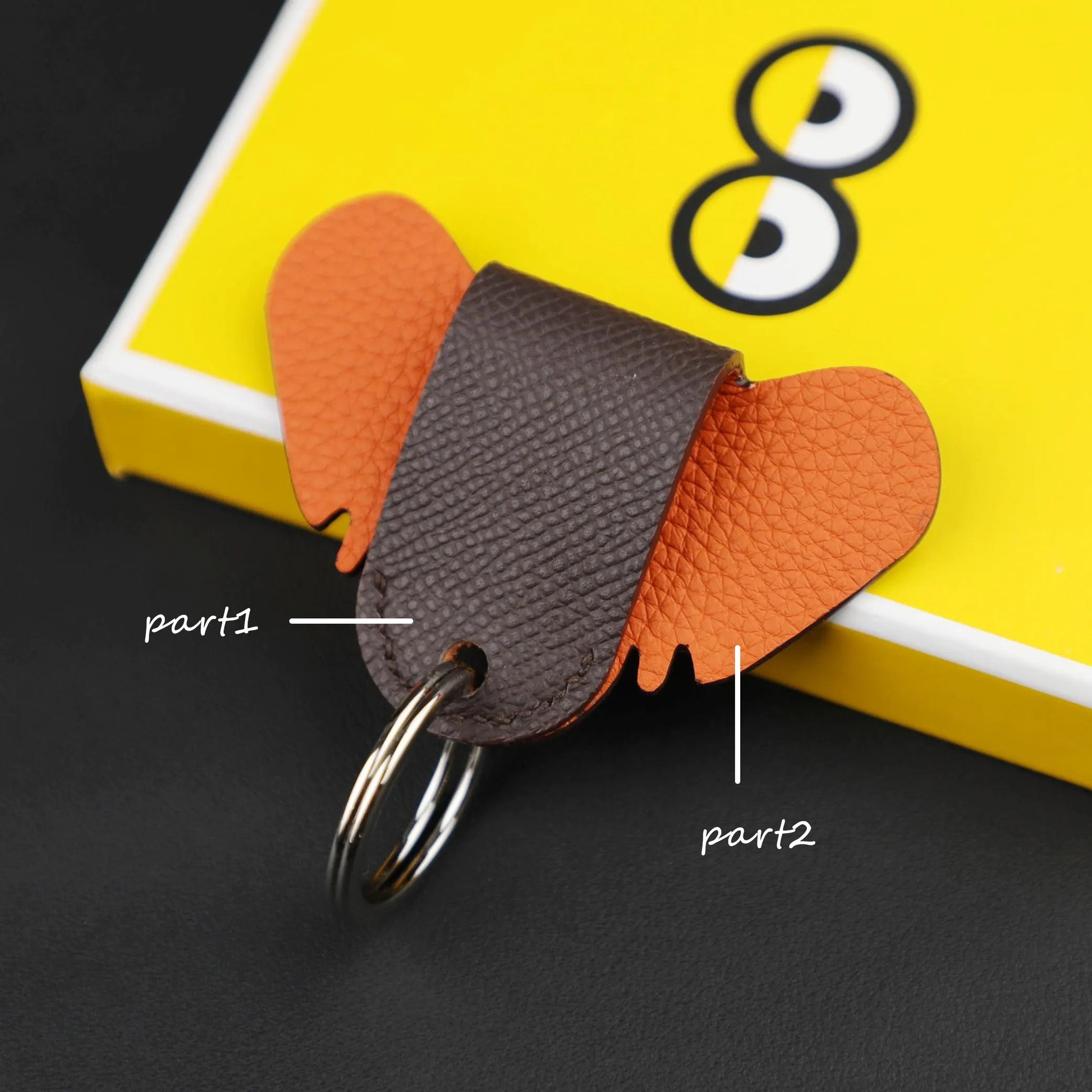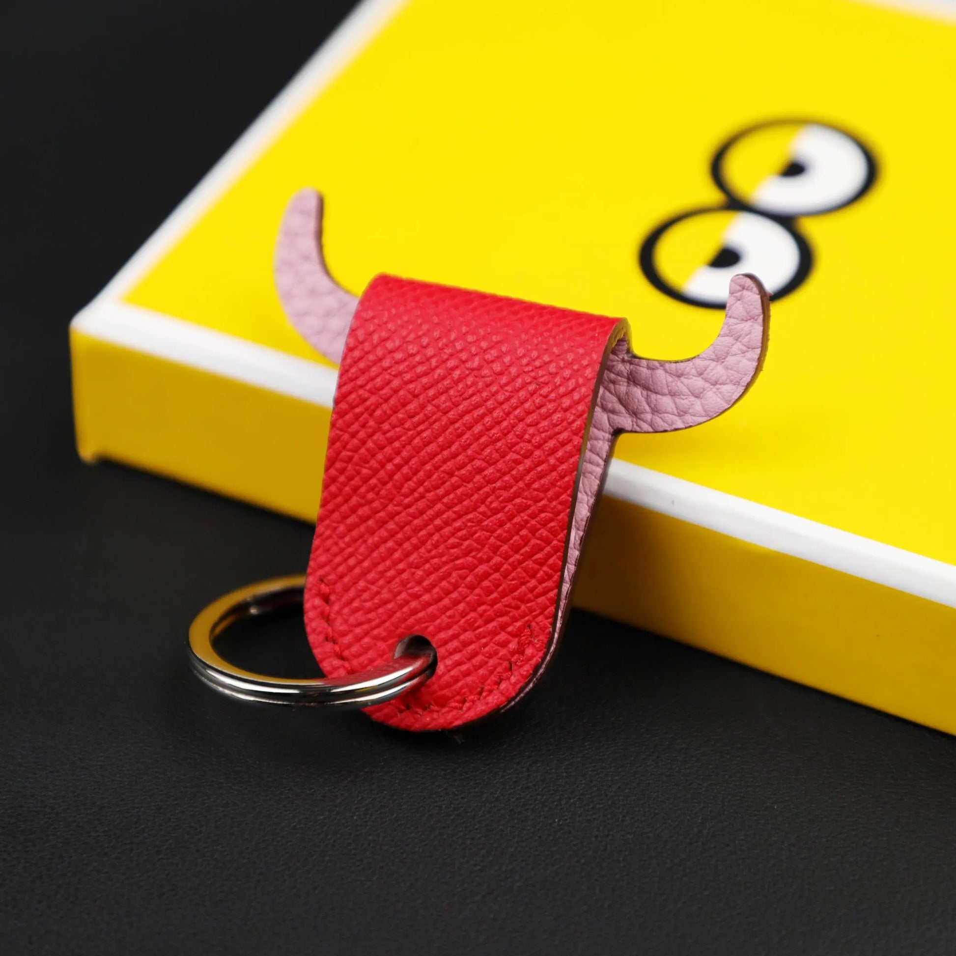 Petit H Key Ring,Real Leather Key ring in calfskin with palladium plated brass ring, Fashion goods and accessories