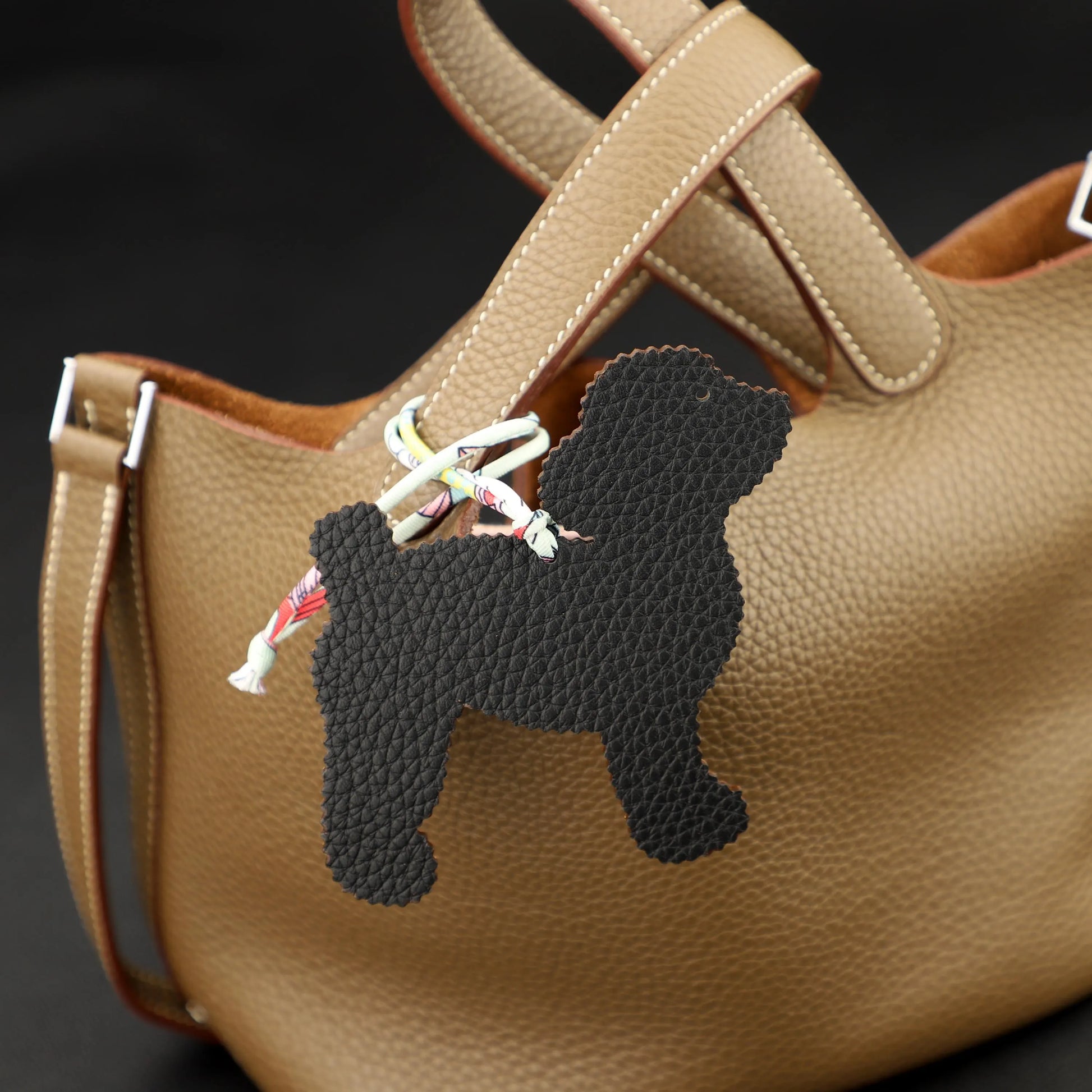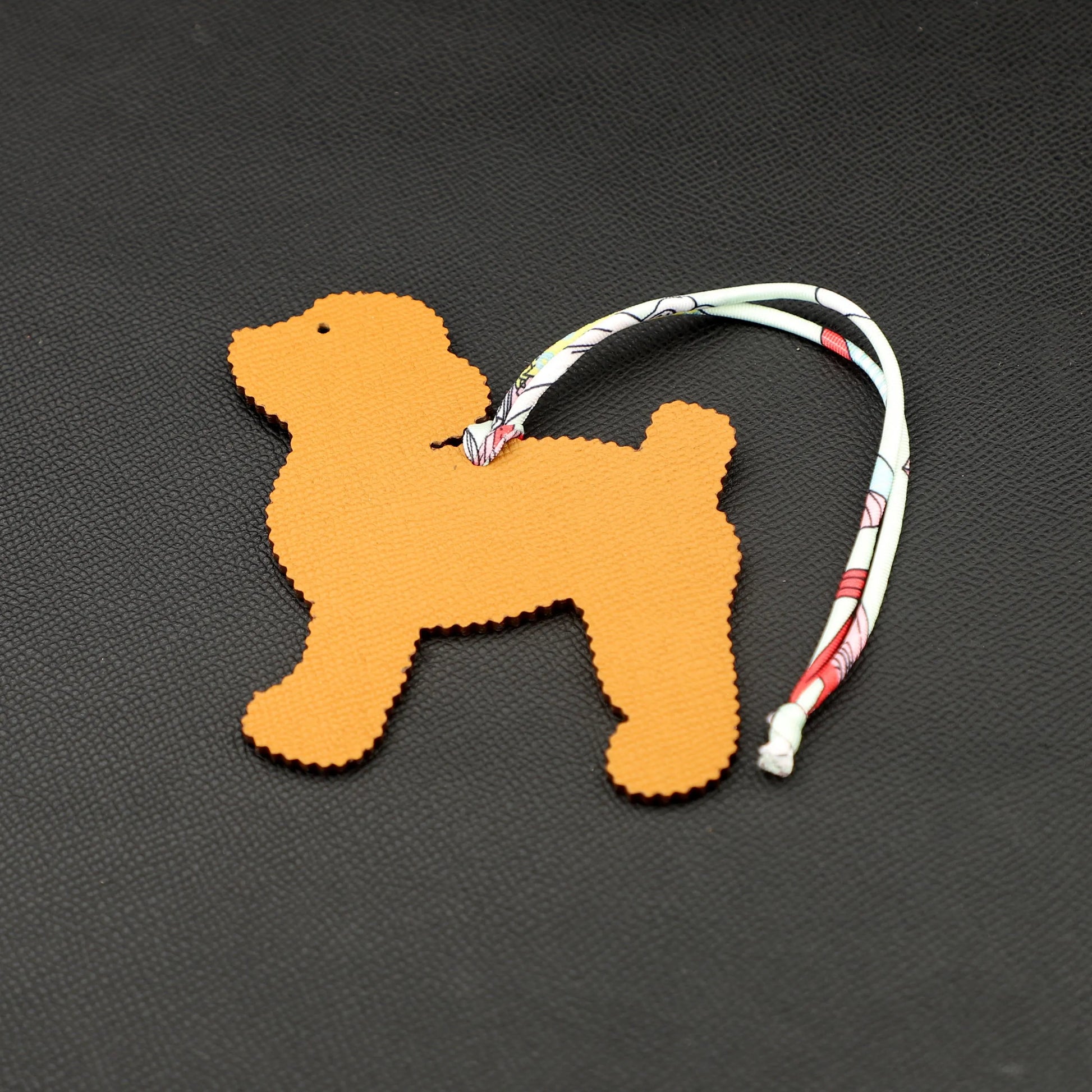 Smiling Cute Poodle Dog bag charm,one side in epsom leather , other side in togo leather ,Leather bag charm, Handmade leather bag charm
